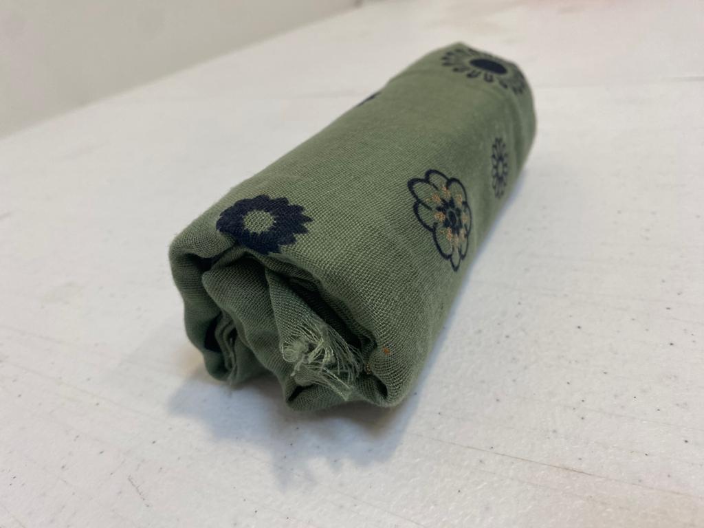 Pañuelo color VERDE, liso con detalles de flores. Tiene mucho estilo, ideal para un outfit formal o informal.